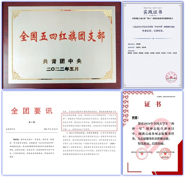 学生工作始终紧扣立德树人根本任务,创新构建“五位一体”育人体系,持续开展“思政微讲堂”、“音乐心理团辅工作坊”、“筑心”志愿服务、“就业大家谈”、“班主任说”等品牌活动,系统推进思想铸魂工程,切实提升“三全育人”工作实效。学生团支部获评“全国五四红旗团支部”,“就业精准帮扶三色工作法”作为河南省唯一案例入选团中央《全团要讯》。“两弹一星”精神宣讲团、井冈山精神宣讲团入选国家级宣讲团,暑期社会实践团队连续三年获评全国“镜头中的三下乡”优秀团队、全国大学生社会实践“千校千项”优秀团队。学生个人荣获“中国大学生自强之星”等国家级省级荣誉达百项,相关先进事迹被人民日报、光明网等主流媒体广泛报道。