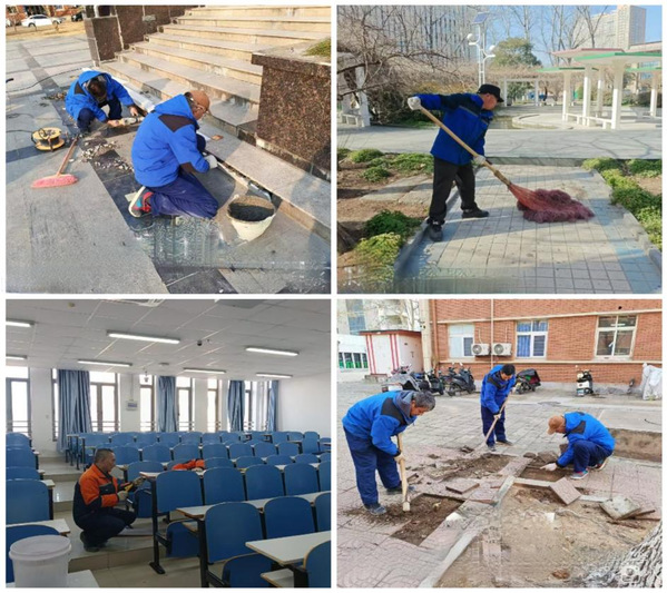 设施检修高效有力。全面完成供水水质检测、直饮水水箱消毒、用电设备维保及暖气管路检修,同步推进浴室深度清洁。全面检修宿舍楼和教学楼各项设施,为服务新学期教学科研提供坚实保障。