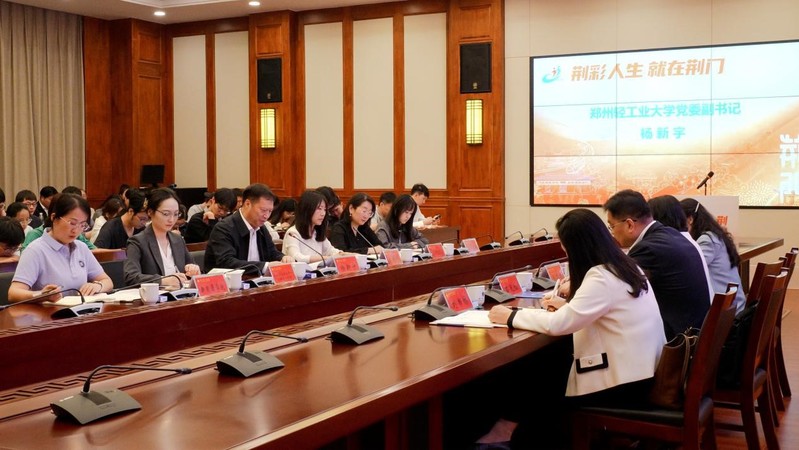 推介会上,杨新宇对荆门市代表团的到来表示热烈欢迎,简要介绍了学校办学特色和人才培养成效。他强调,近年来学校与荆门市人才互动频繁、合作稳步推进,双方共建了荆门市首批全国驻点引才工作站,校地合作关系迈上新台阶。他希望以此次活动为新起点,校地携手打造品牌合作项目、共建人才库、联合开展技术攻关、共同做好招聘活动,为荆门产业发展提供更加精准、高效的人才支持。