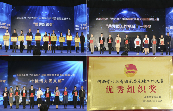 近日,2020年度“活力杯”河南学校共青团基层基础工作大赛(高校组)决赛在黄河水利职业技术学院举办,经过现场激烈比拼,经济与管理学院2018级市场营销专业1班团支部荣获河南省“十佳活力团支部”称号,国际教育学院《一讲二养三评四行》荣获河南省“共青团工作项目大赛”一等奖,我校获优秀组织奖。