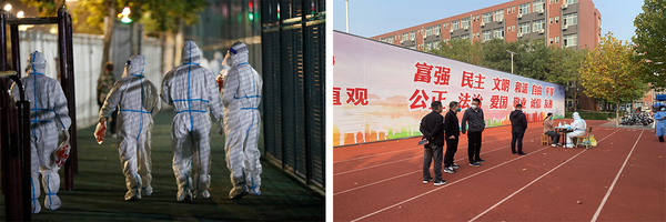 在校园疫情防控志愿服务工作开展过程中,教师志愿者们挺身而出,逆行而上,穿上防护服、戴上防护面罩、换上红马甲时刻活跃在疫情防控的第一战线。来自20个部门,11个学院组成的96人核酸采集队伍,帮助搭建核酸检测点、录入师生员工信息、维护核酸检测现场秩序,尽己所能帮助他人,保证了每一次疫情防控核酸检测志愿服务的正常进行。部分教师志愿者在学校围墙值守,全力守护校园防控“安全网”。