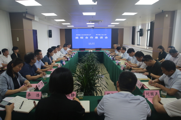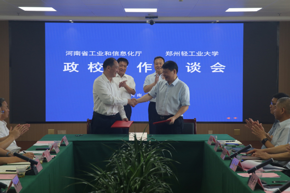 7月22日,郑州轻工业大学与河南省工业和信息化厅在省工信厅会议室举行战略合作签约仪式。省工信厅党组书记、厅长李建涛,一级巡视员姚延岭,二级巡视员翟贵平,我校党委书记黄荣杰、校长魏世忠、副校长白艳红、张骁出席签约仪式。省工信厅相关处室负责同志、我校相关部门和学院负责同志参加仪式。会议由翟贵平主持。