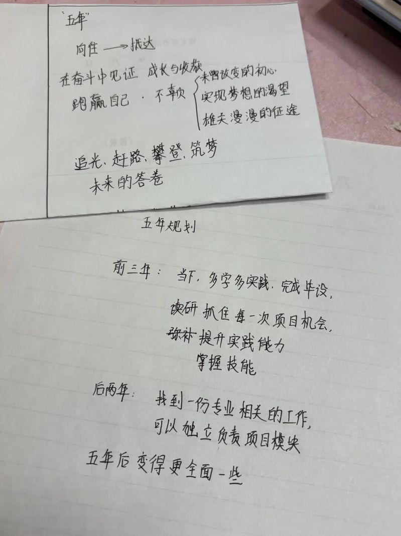 大三的迷茫像潮水,看到同学各有所获,说不慌是假的。我也在考研这条路上挤着,但渐渐明白,考研不是目的,而是成长的手段。我的“五年规划”,便是以此为契机,系统地打磨自己、沉淀自己。我的规划是:用一年,为知识奠基;用三年,为能力淬火;用更长岁月,为价值扎根。
