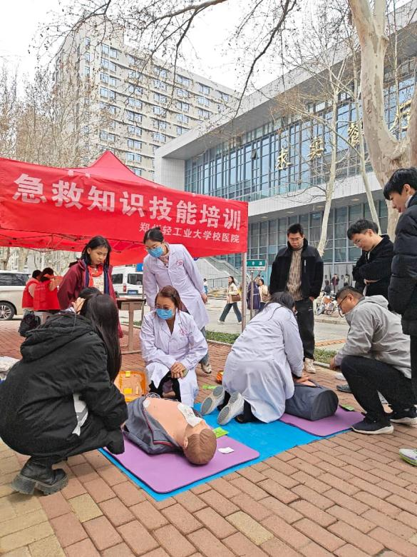 为深入贯彻落实《教育强国建设规划纲要(2024—2035年)》中关于“促进学生健康成长、全面发展”的重要部署,郑州轻工业大学积极践行“健康第一”教育理念,将急救教育作为推进健康学校建设和落实立德树人根本任务的重要举措,探索构建“急救教育+校园生活”融合模式,将传统课堂教学延伸至师生日常校园生活场景,打造校园“急救地摊”特色教育品牌。3月20日,校医院医务人员在学校餐厅前广场开展现场教学,以“理论讲解+实操演练+即时指导”形式,系统开展心肺复苏(CPR)与自动体外除颤器(AED)技能培训,实现急救技能学习“零距离接触、沉浸式体验、标准化掌握”。活动吸引过往师生200余人次参与,使关键生命救助技能在互动实践中得到有效传播。