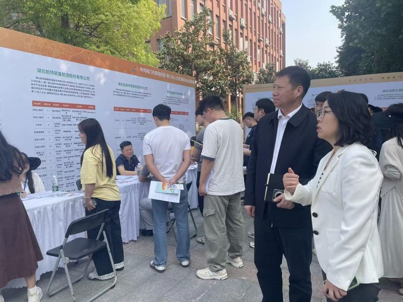 荆门市和沙洋县分别作主题推介,介绍两地的历史文化、生态优势、产业布局、发展规划和人才政策,荆门市重点企业湖北神地农业科贸有限公司作招聘宣讲。招聘会现场气氛热烈,毕业生积极投递简历,与用人单位深入交流,初步达成就业意向120余人。