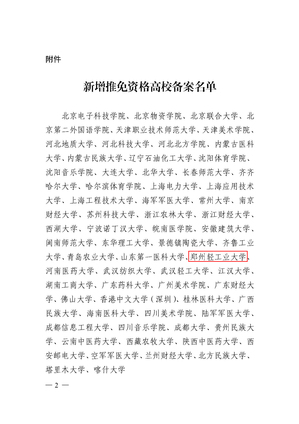 8月,教育部办公厅正式发布《关于对新增推免资格高校予以备案的通知》,我校经过严格申报与评审,成功入选新增硕士研究生推免资格高校名单,并获教育部备案。这标志着从2025年起,我校优秀本科生将可直接通过推免渠道攻读研究生学位。这既是对我校办学质量与育人成效的权威认可,也为中原地区高等教育高质量发展注入新动能。