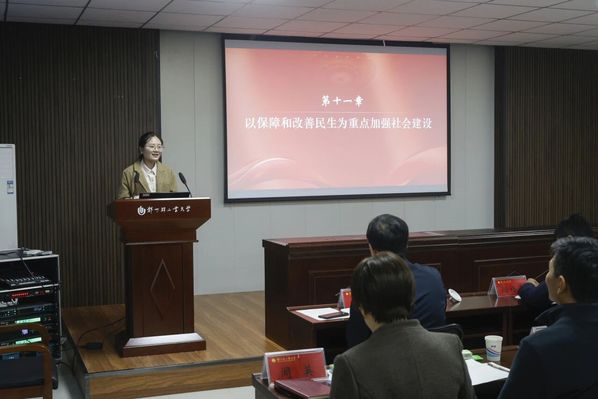 马寒以《中国式现代化的“十五五”行动纲领》为题,对党的二十届四中全会精神进行解读辅导。实践证明,用五年规划引领经济社会发展,是符合中国国情、彰显制度优势的体制安排,五年规划取得的成功只有在中国共产党坚强有力领导下才能实现。他表示,郑州轻工业大学马克思主义学院作为河南省高校示范性马克思主义学院,应在学习贯彻全会精神上站位更高、理解更深、行动更实,不断推进新时代思政课和马克思主义学院高质量发展。